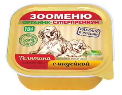 мясо и мясные субпродукты не менее 80% (в том числе индейка не менее 15%), злаки, натуральные загустители, витаминно-минеральный комплекс.