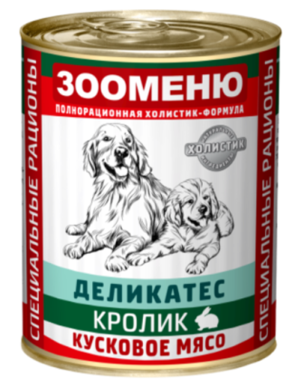 Полнорационный консервированный корм для собак «Кролик с гречкой.