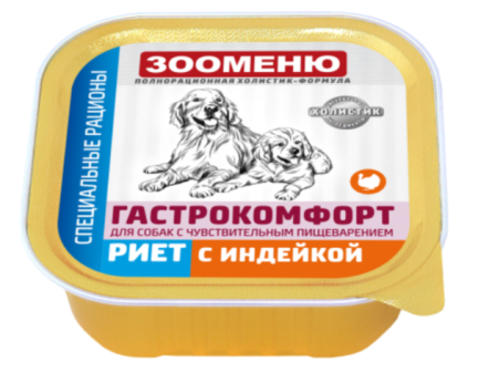 Полнорационный консервированный корм для собак «Риет с индейкой.