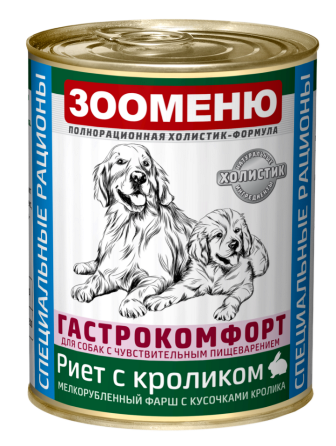 Полнорационный консервированный корм для собак «Риет с кроликом».
