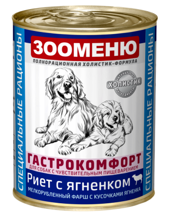 Полнорационный консервированный корм для собак «Риет с ягненком».