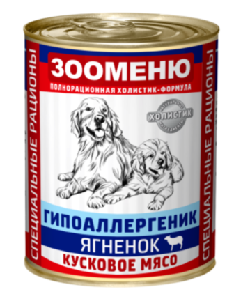 Полнорационный консервированный корм для собак «Ягненок с рисом».