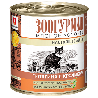 Мясное ассорти - Консервы для кошек Телятина с кроликом 250 гр